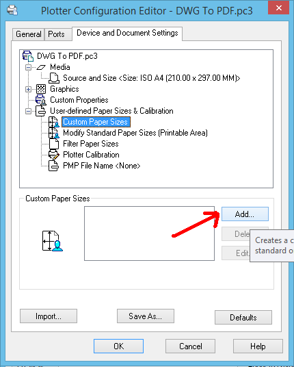 Ga vervolgens naar Custom Paper Sizes en klik op Add...