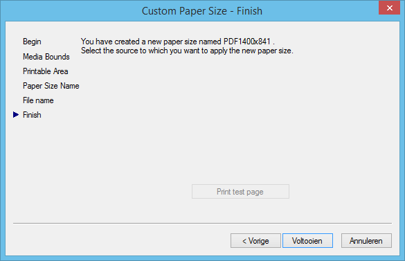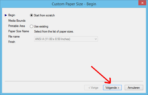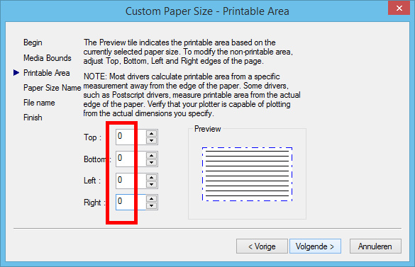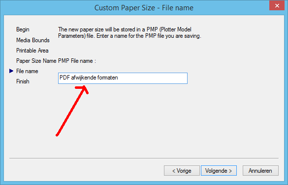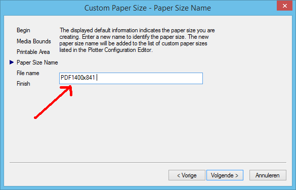 In het volgende scherm kan de naam worden opgegeven van het formaat. De plotternaam wordt later opgegven.